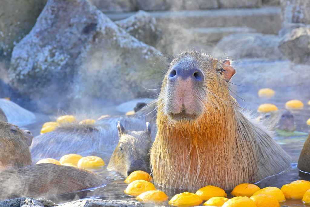 多くの人々を魅了するカピバラたちのくつろぐ姿に、今シーズンもぜひ癒されてください。